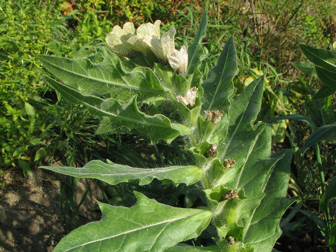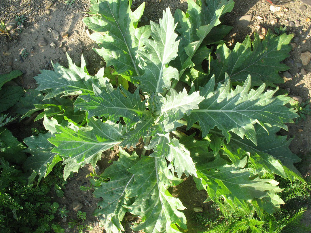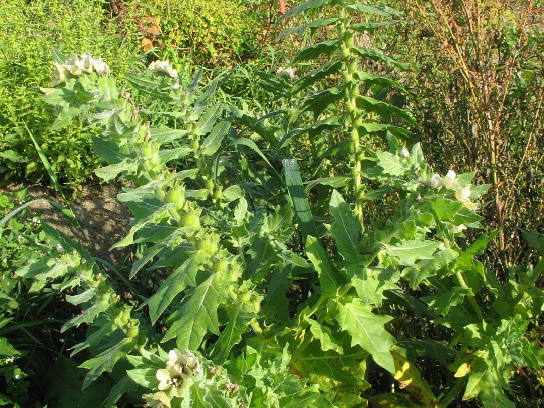 Leaves: Large, oval to oblong, deeply lobed, and hairy with a foul smell when crushed.