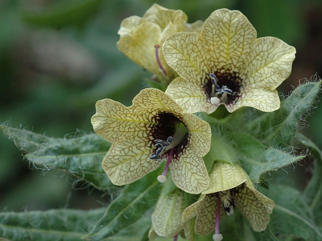 Flower: Pale yellow with dark purple veins, funnel-shaped, and somewhat sticky. Flowers bloom from mid to late summer.