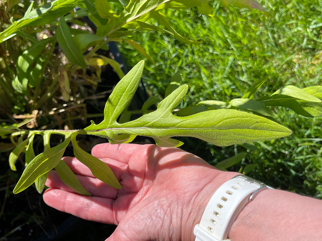 Leaves: Deeply lobed, dark green, and slightly hairy leaves.