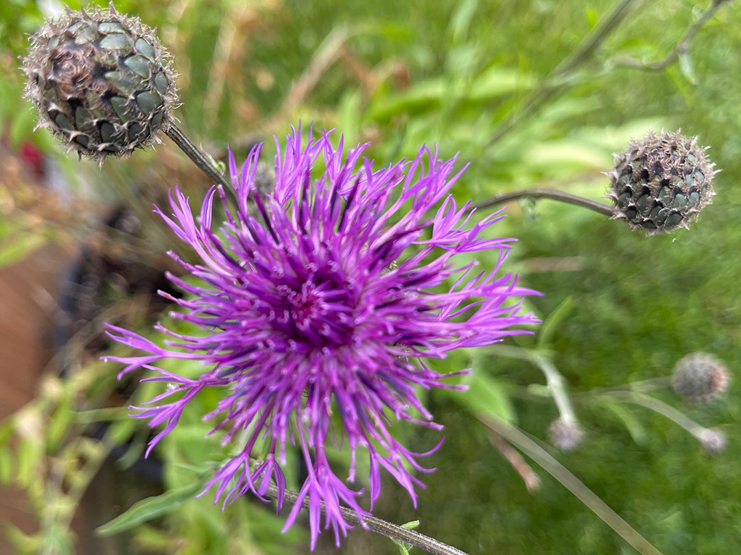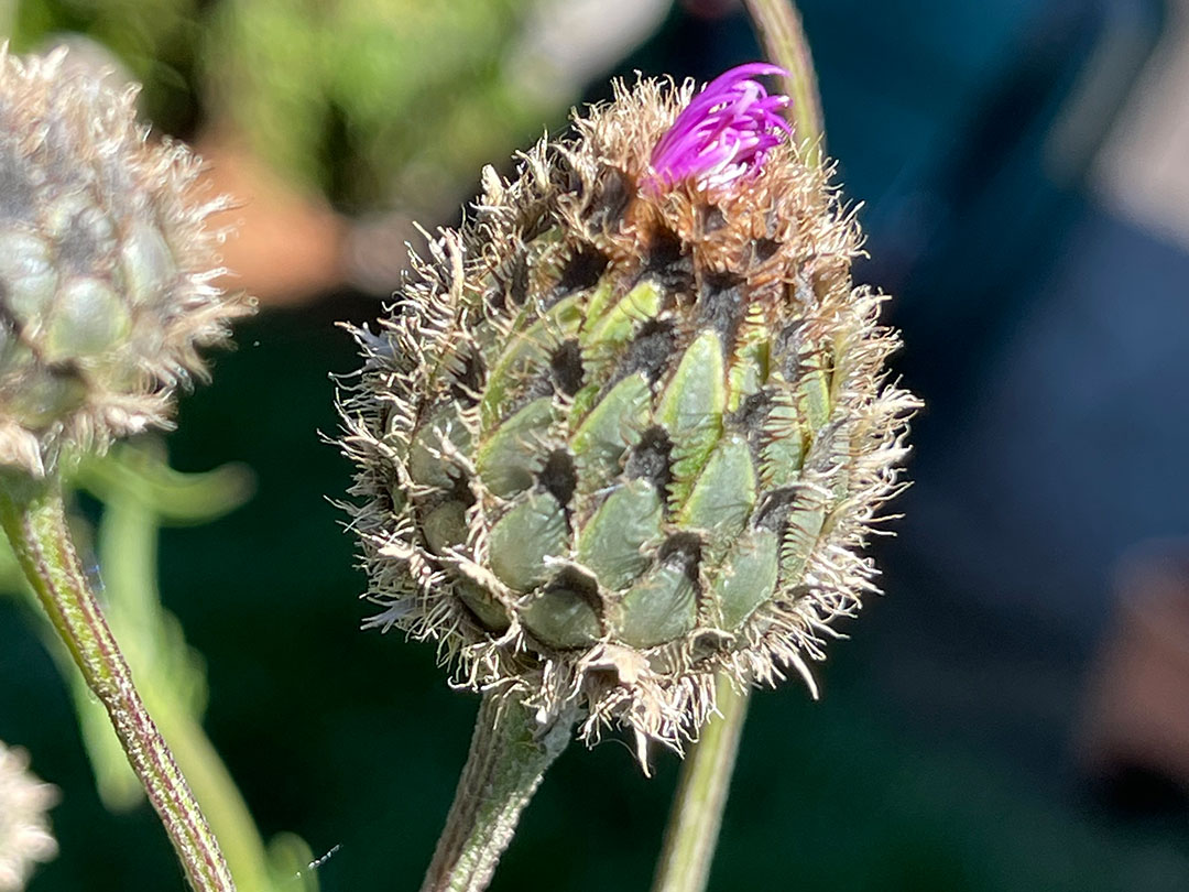 Growth Habit: A perennial herb that forms loose clumps of tall, flowering stems. It spreads by seed and can form large patches. In situ, greater knapweed often appears as tall, purple-flowered plants scattered throughout meadows or open fields.