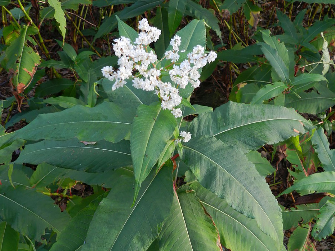 Impacts: Highly invasive, particularly in riparian zones and disturbed areas. Himalayan knotweed spreads quickly via rhizomes and seeds, forming dense monocultures that displace native plants and reduce biodiversity. It can outcompete native vegetation and disrupt ecosystems, particularly in wetland and riparian areas.