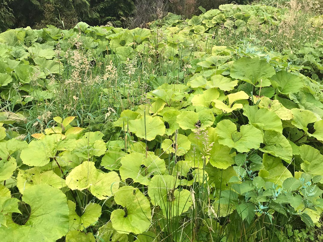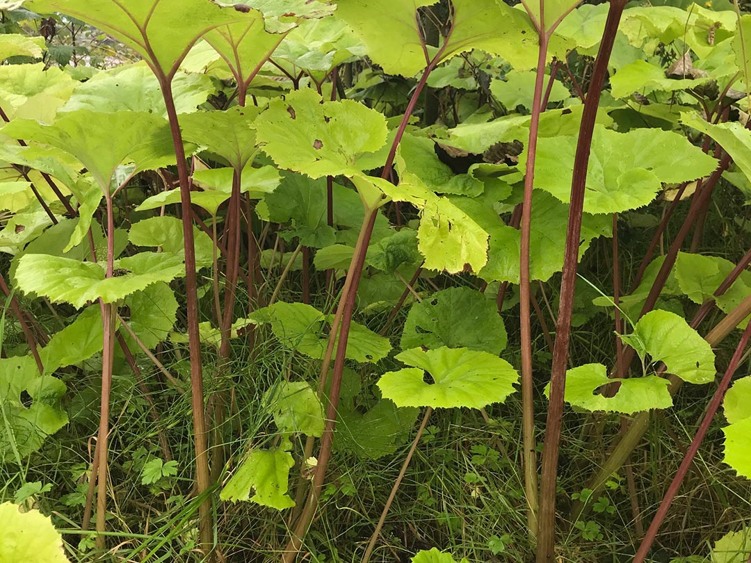 Growth Habit: A perennial herb that spreads rapidly through underground rhizomes, forming dense colonies. It can form large, sprawling patches with massive leaves that shade out other vegetation. In situ, Japanese butterbur creates expansive colonies of large, umbrella-like leaves in moist, shaded areas.
