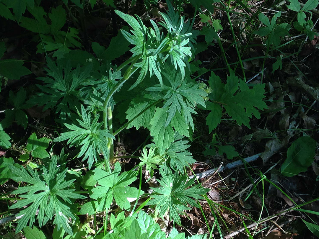 Leaves: Deeply lobed, dark green, and slightly hairy.