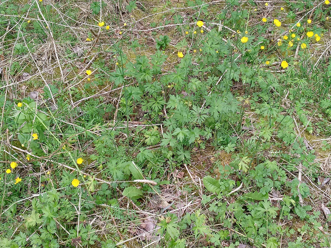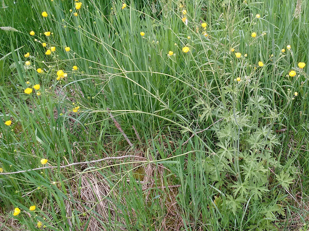 Growth Habit: A perennial herb that grows in clumps and spreads via seeds and creeping roots. It often forms loose colonies in moist areas. In situ, meadow buttercup appears as scattered patches of tall, yellow-flowered plants in grassy habitats or pastures.