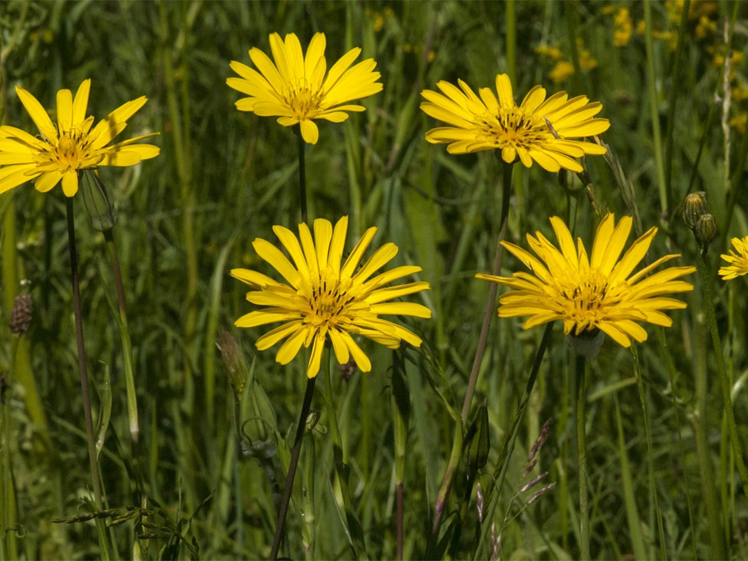 Growth Habit: A biennial or perennial herb that forms loose clumps and spreads via seeds. It often forms scattered stands in grassy habitats. In situ, meadow goat's-beard appears as tall, slender plants with bright yellow flowers, often seen in meadows and along roadsides.