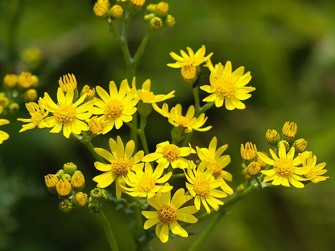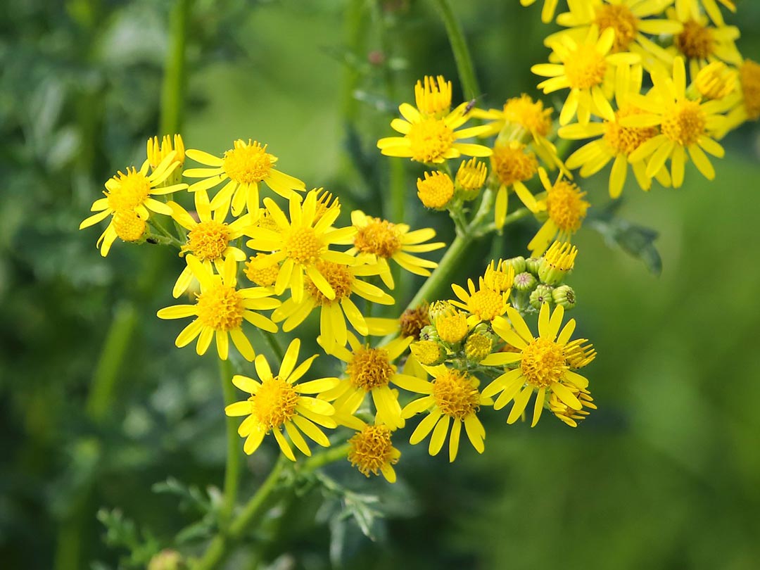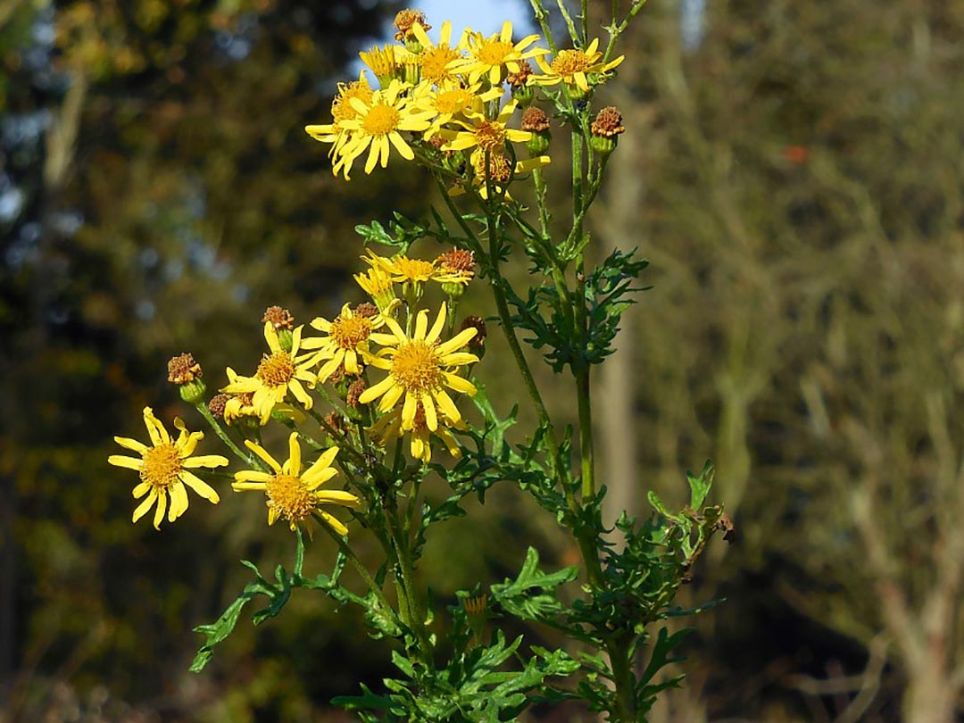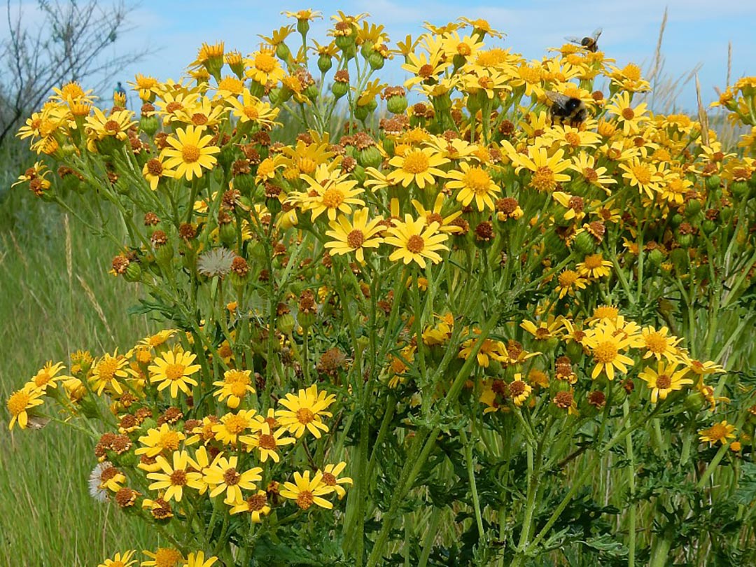 Growth Habit: A biennial or short-lived perennial herb that spreads by seeds, forming dense patches in open areas. In situ, tansy ragwort appears as tall, yellow-flowered plants in disturbed areas and pastures.