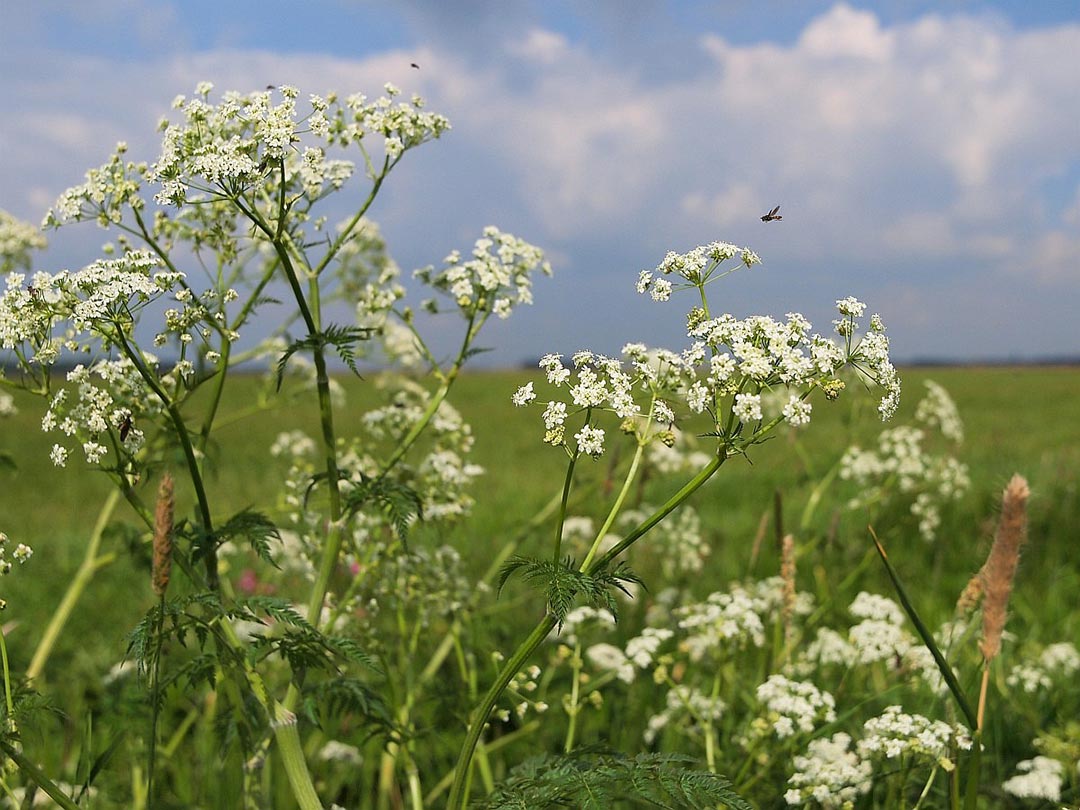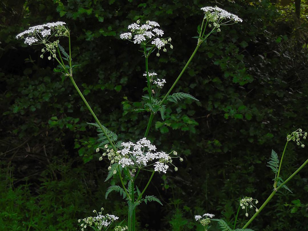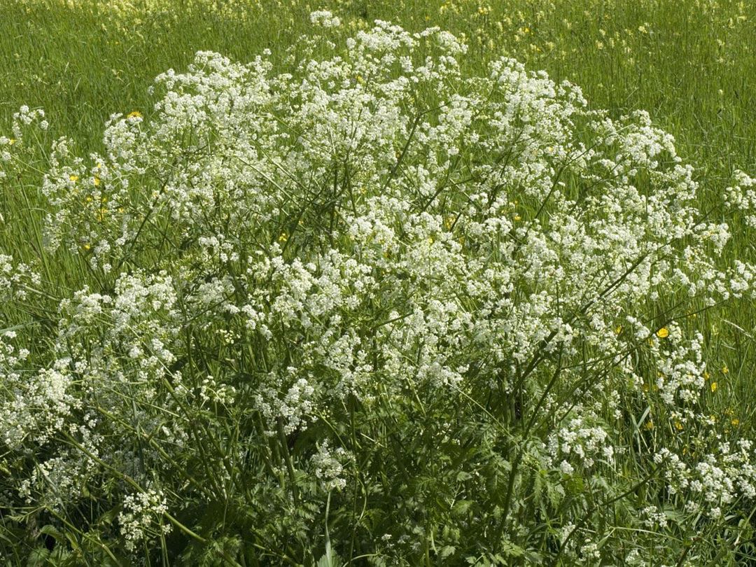 Growth Habit: A biennial or perennial herb that spreads by seeds and roots, forming dense stands in open areas. In situ, wild chervil appears as tall, bushy plants with umbrella-shaped flower clusters in open fields and along roadsides.