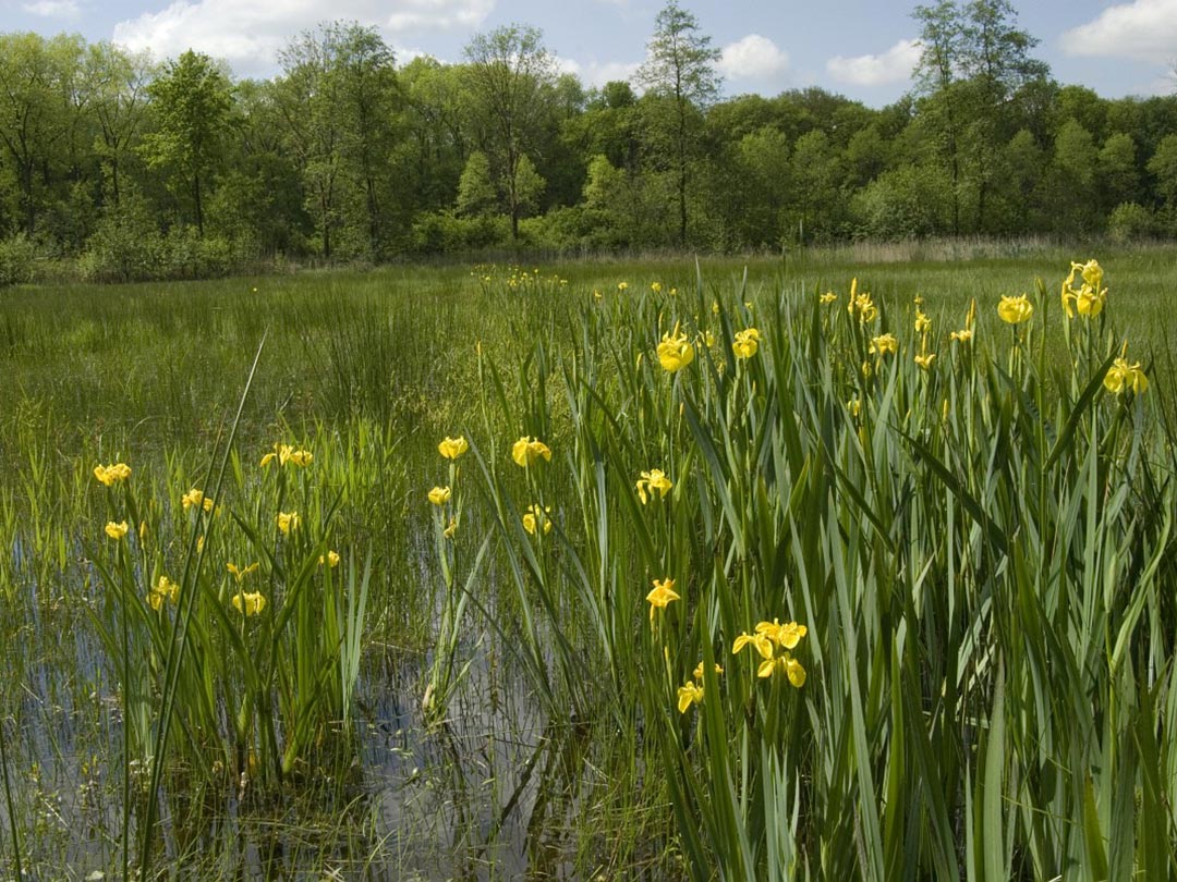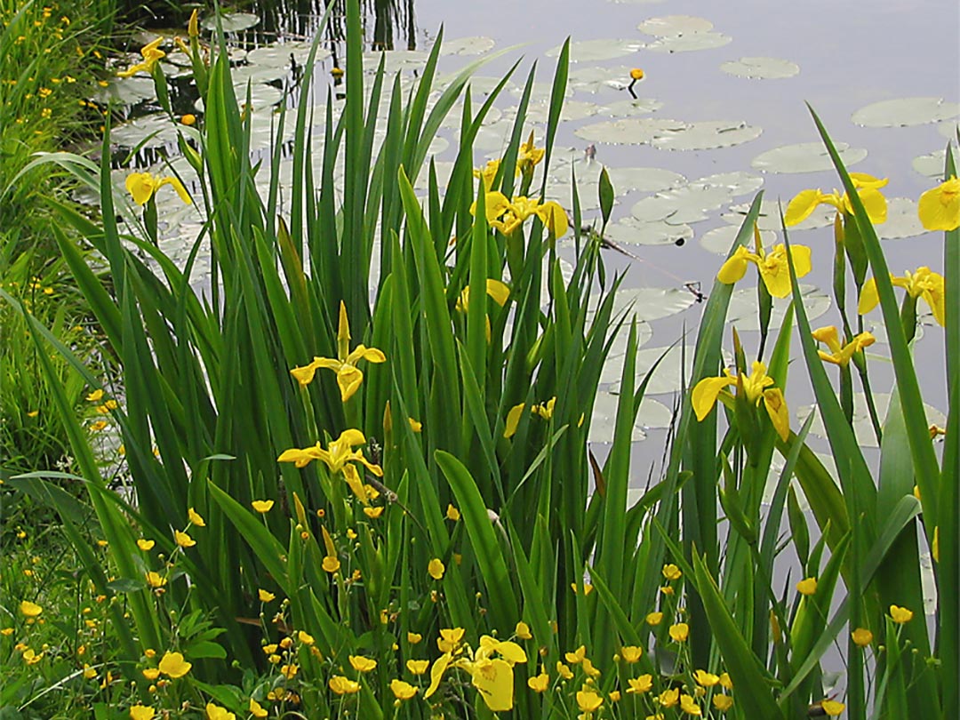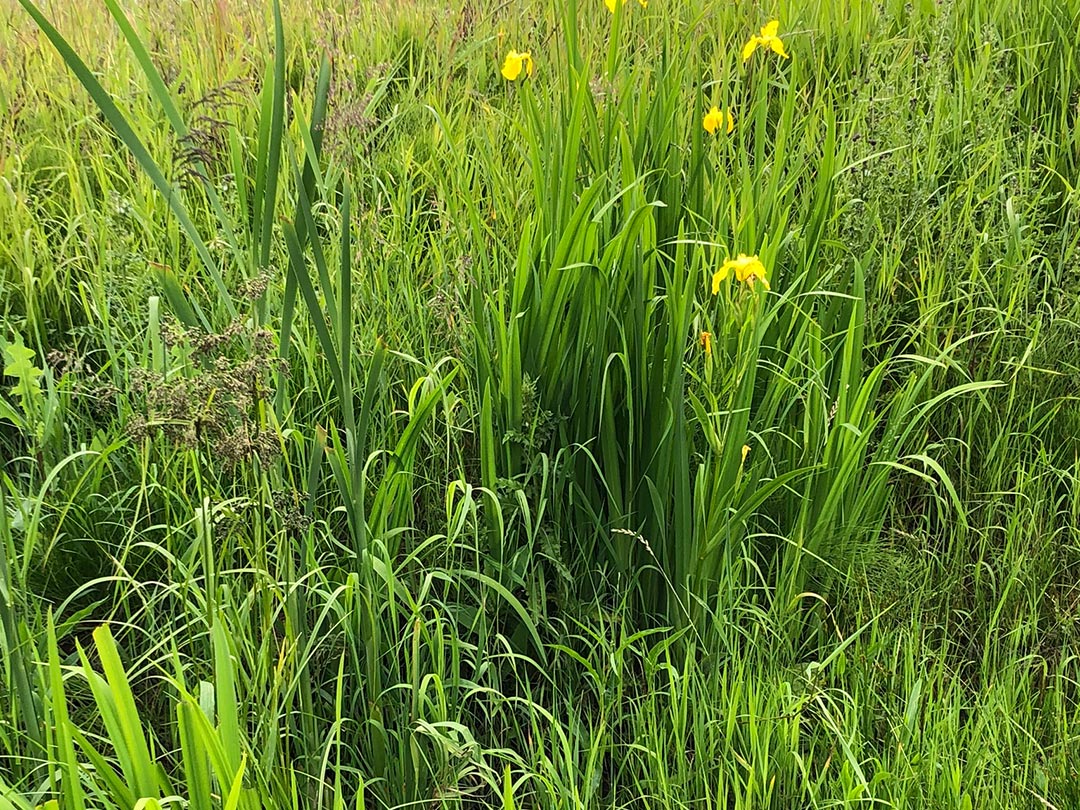 Growth Habit: A perennial herb that spreads aggressively through both rhizomes and seeds, forming dense stands in wetland environments. It can quickly dominate large areas of marshes and wet meadows. In situ, yellow flag iris appears as tall, dense clumps of bright green foliage with striking yellow flowers along the edges of water bodies.